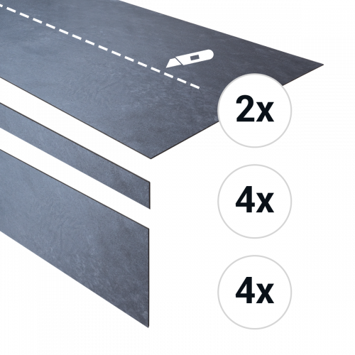 Handige set bestaande uit 2x PVC slab (45,7 x 152,4 cm), 4x PVC strook (4 x 152,4 cm) en 4x PVC stootbord (18 x 152,4).