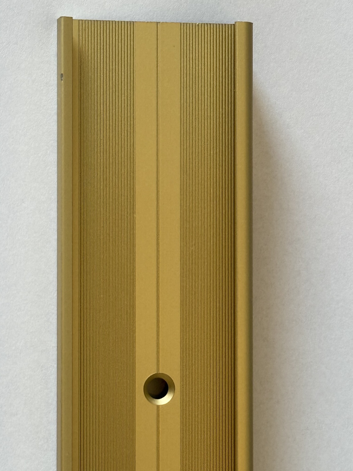 Dit zandkleurige/ goudkleurig, aluminium trapneusprofiel is ontworpen om de randen van een trap te beschermen tegen slijtage en beschadiging, terwijl het ook zorgt voor een stijlvolle afwerking van de trap. Het profiel is eenvoudig te installeren en kan vastgeschroefd of verlijmd worden. Het profiel heeft een anti-slip oppervlak, wat de veiligheid van de trap verhoogt en de kans op uitglijden verkleint.