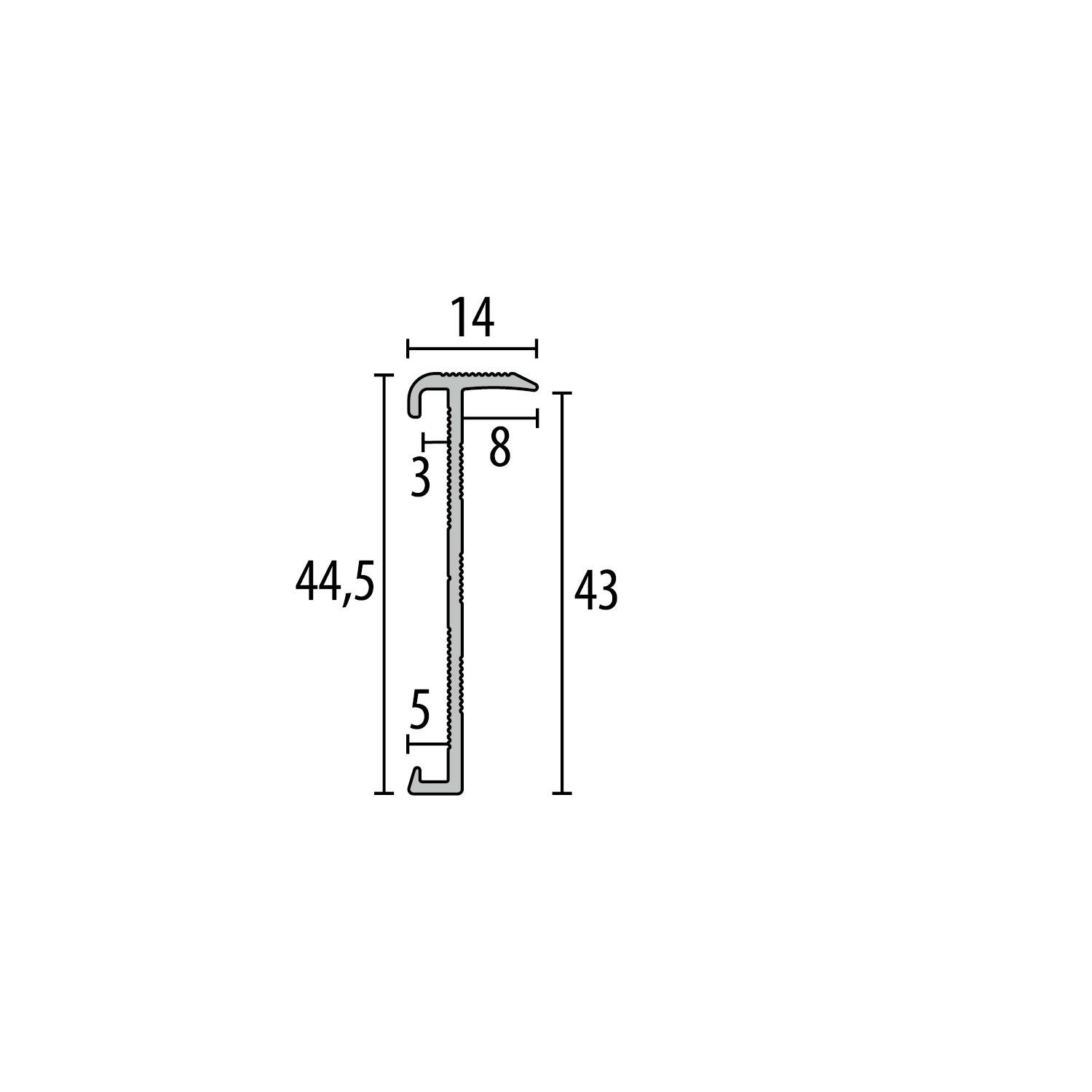 Met het trapneusprofiel van Küberit kun je makkelijk trappen van PVC afwerken met een dikte van 2-3 mm. Het profiel heeft een afmeting van 14x43mm en is gemaakt van hoogwaardig geanodiseerd aluminium. Het trapneusprofiel is gemaakt van duurzaam en slijtvast materiaal, waardoor het lang meegaat en bestand is tegen dagelijks gebruik.