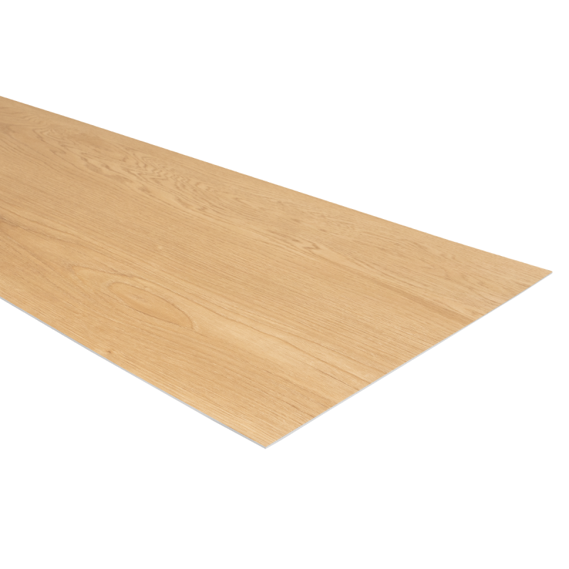Met de PVC trap slab Crystal renoveer je gemakkelijk elke trap, waardoor de trap dezelfde look en feel krijgt als de beneden- en bovenverdieping. De trapslabs zijn extra brede PVC planken met een formaat van 45,7 x 152,4 cm en een doorlopend decor. Hierdoor kun je in één keer de treden en stootborden uitmeten zonder naden.