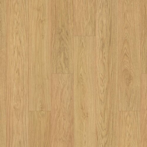 Een houten vloer? Je zou het bijna denken maar dit is toch echt laminaat. De vloerdelen hebben een formaat van 128,5 cm x 24,2 cm en zijn 8 mm dik.