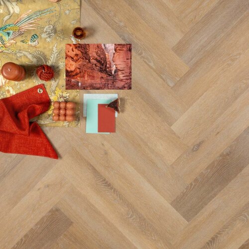 Met zijn matte, lichtbruine uitstraling straalt de Ruby Herringbone Rigid een onmiskenbare warme en huiselijke sfeer uit. Perfect afgestemd op interieurs met een Scandinavische of rustieke flair, vormt deze vloer een harmonieuze basis. De subtiele kleur van de Ruby Herringbone creëert een ambiance van ontspannen luxe, terwijl hij geluiddempend, perfect voor vloerverwarming en -koeling, 100% waterbestendig is, en een warm, hygiënisch en natuurgetrouw oppervlak biedt dat ook nog eens eenvoudig te onderhouden is. De SPC rigid vloeren van Otium at Home zijn voorzien van een geïntegreerde ondervloer.