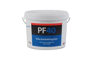 Is een oplosmiddel vrije dispersie lijm. De PF40 kan toegepast worden voor het verlijmen van diverse soorten vloerbedekking op verschillende ondergronden. De ondergrond dient vlak, schoon, blijvend droog, trek- en drukvast te zijn. Gesloten vloerbedekkingen zoals linoleum en cushion vinyl, vereisen een vocht absorberende ondergrond.