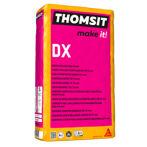 Zeer emissiearm egaliseermiddel op cementbasis voor het egaliseren van ondergronden, alvorens een bekleding wordt aangebracht. Geschikt voor alle soorten dekvloeren, beton, tegels en steenachtige ondergronden. Alleen toepasbaar binnen en in een droge omgeving. Bij cementachtige ondergronden, moet een eventuele cementsluier met geschikte machines verwijderd worden. De vakkundig voorbereide ondergrond met de geschikte Thomsit voorstrijk- of grondeermiddelen behandelen.