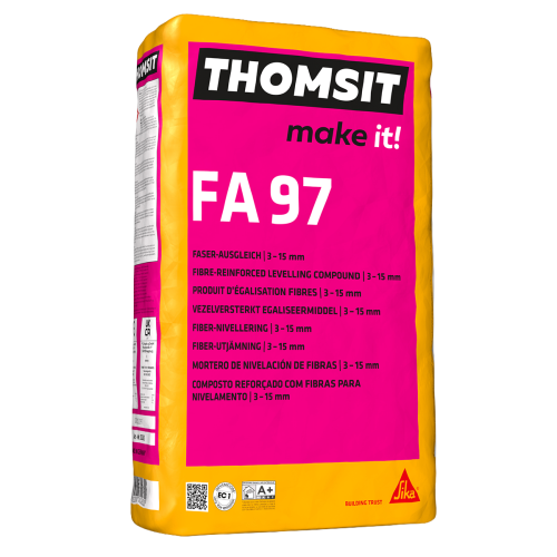 Uitsluitend voor gebruik in droge binnenruimtes. Thomsit FA 97 niet gebruiken als dekvloer of eindvloer. Geschikt voor het gebruik onder houten vloeren indien gebruikt in combinatie met elastische Thomsit lijmen. Thomsit FA 97 voldoet aan de hoogste eisen ten aanzien van veilige werkomstandigheden, een gezond binnenklimaat en milieuvriendelijkheid.