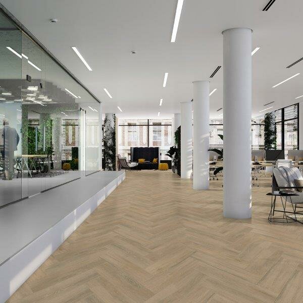 De Vivafloors - Visgraat 8360 (Klik PVC) vloer komt uit de 8300-serie welke een natuurlijke eikenhouten vloer uitstraling heeft.