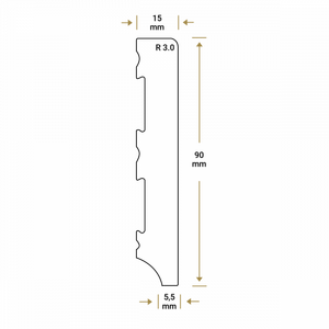 Deze kunststof plint is watervast en daarmee dus goed te combineren met een PVC of tegelvloer. Uniek aan deze plint is dat deze gemaakt is uit 100% gerecyclede grondstoffen (PS-schuim).